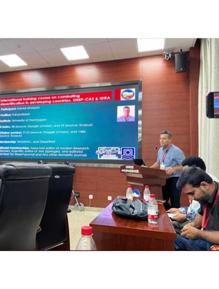 برگزاری نشست علمی توسط جناب آقای دکتر حمید غلامی عضو هیات علمی گروه مهندسی منابع طبیعی به همراه اعضای هیات علمی دانشکده کشاورزی و منابع طبیعی و دانشجویان در خصوص ارائه تجربیات سفر ویژه پژوهشگران جوان و گزارش از فعالیت های بیابان زدایی و تولید انرژی و غذا در مناطق بیابانی چین.