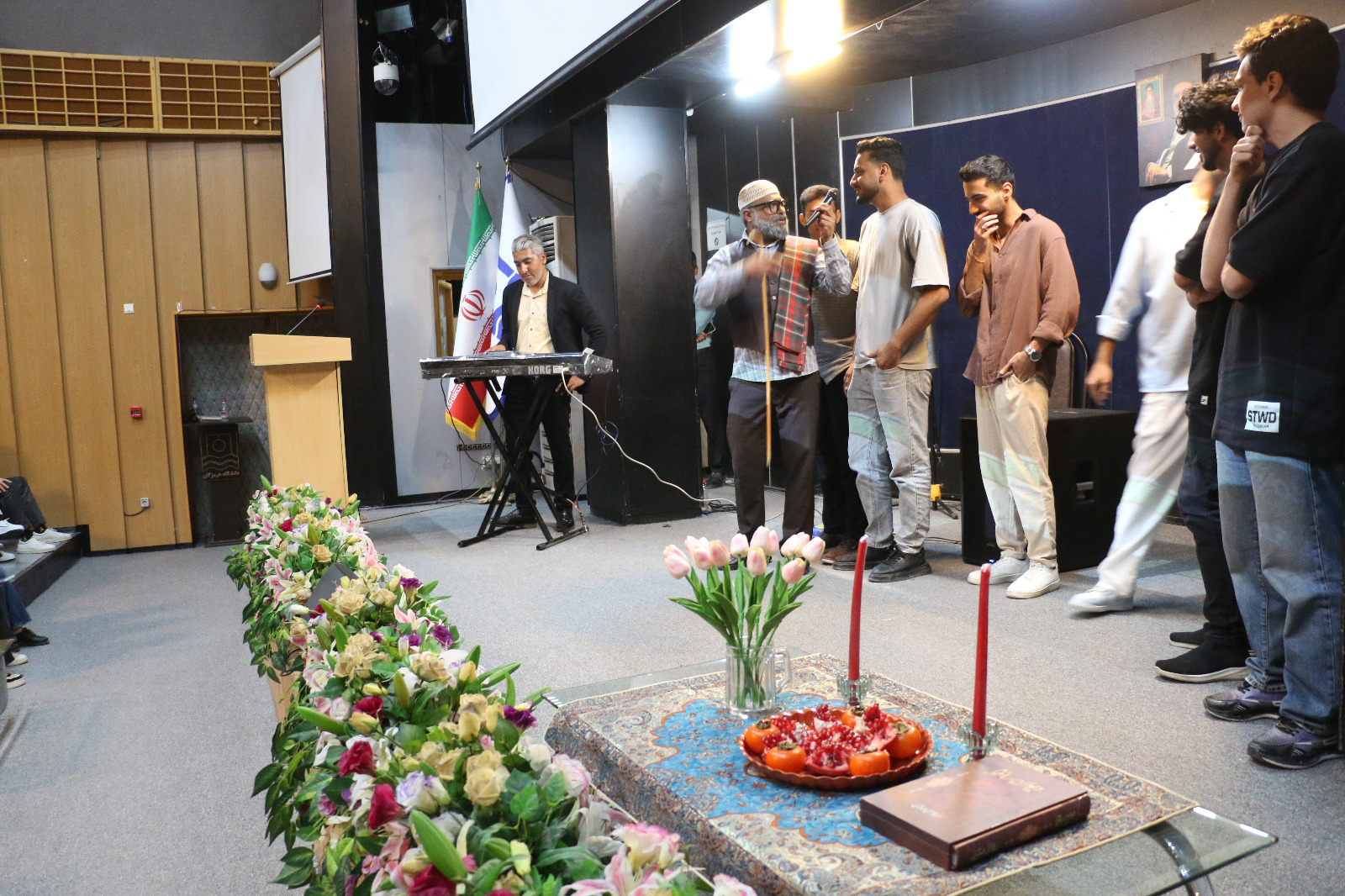 آیین شب یلدای دانشجویی با تلاوت قرآن کریم، پخش سرود ملی و سخنان دکتر کریمی درباره اهمیت نشاط و سلامت روان دانشجویان برگزار شد. اجرای برنامه‌های شاد و طنز در ادامه مراسم، با استقبال گسترده دانشجویان همراه بود و فضایی صمیمی و پرنشاط در دانشگاه ایجاد کرد.
