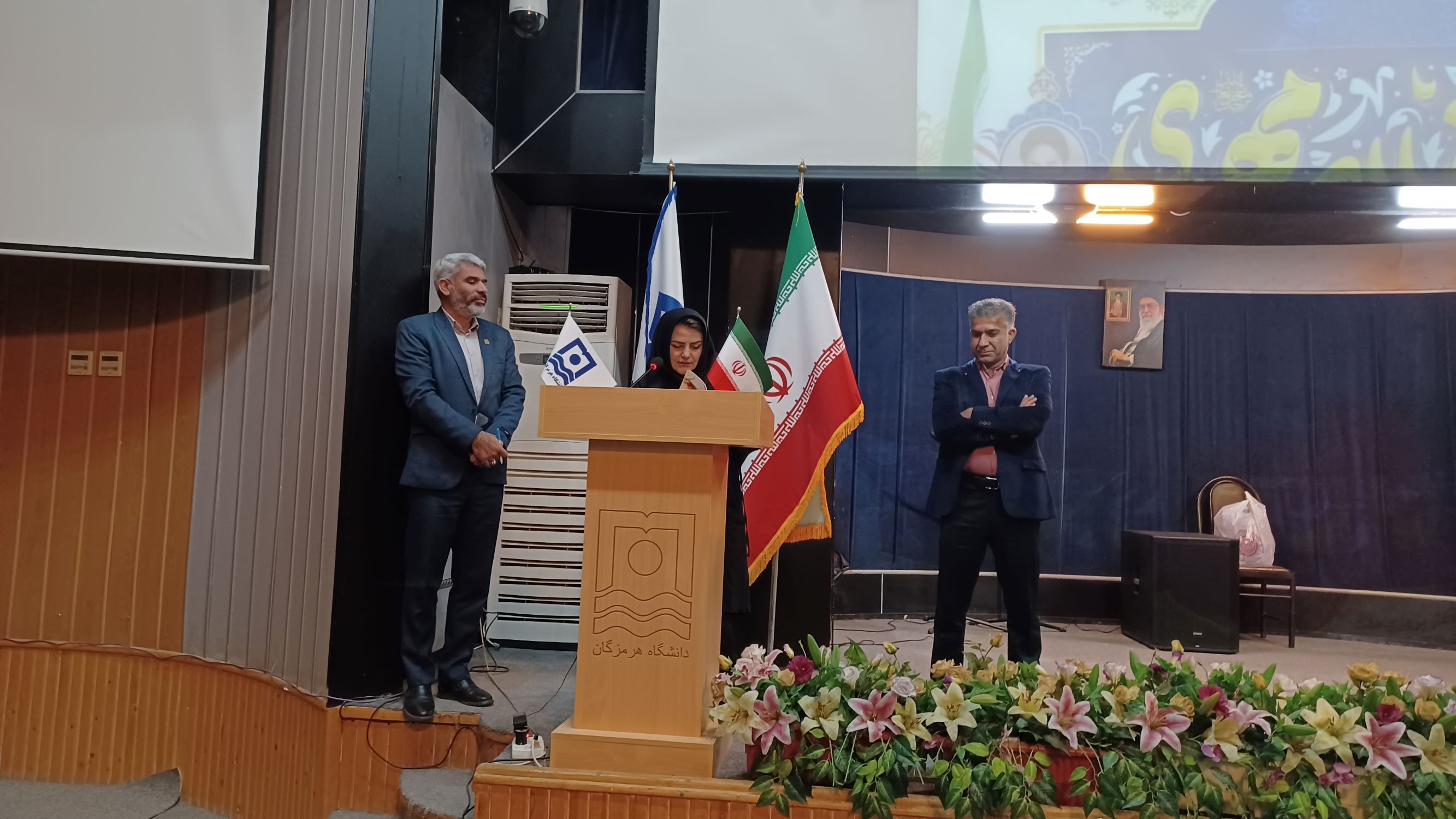 این مراسم با تلاوت آیاتی چند از کلام‌الله مجید و پخش سرود ملی جمهوری اسلامی ایران آغاز شد. در ادامه، جناب آقای دکتر کریمی، معاون فرهنگی و اجتماعی دانشگاه هرمزگان، ضمن تبریک اعیاد فرخنده ماه شعبان، به‌ویژه میلاد باسعادت حضرت ولی‌عصر (عج) و همچنین ایام‌الله دهه فجر، با خوشامدگویی به حاضران، بر ضرورت پاسداشت این ایام سرنوشت‌ساز و نقش‌آفرینی دانشگاهیان در صیانت از ارزش‌های انقلاب اسلامی تأکید کرد.