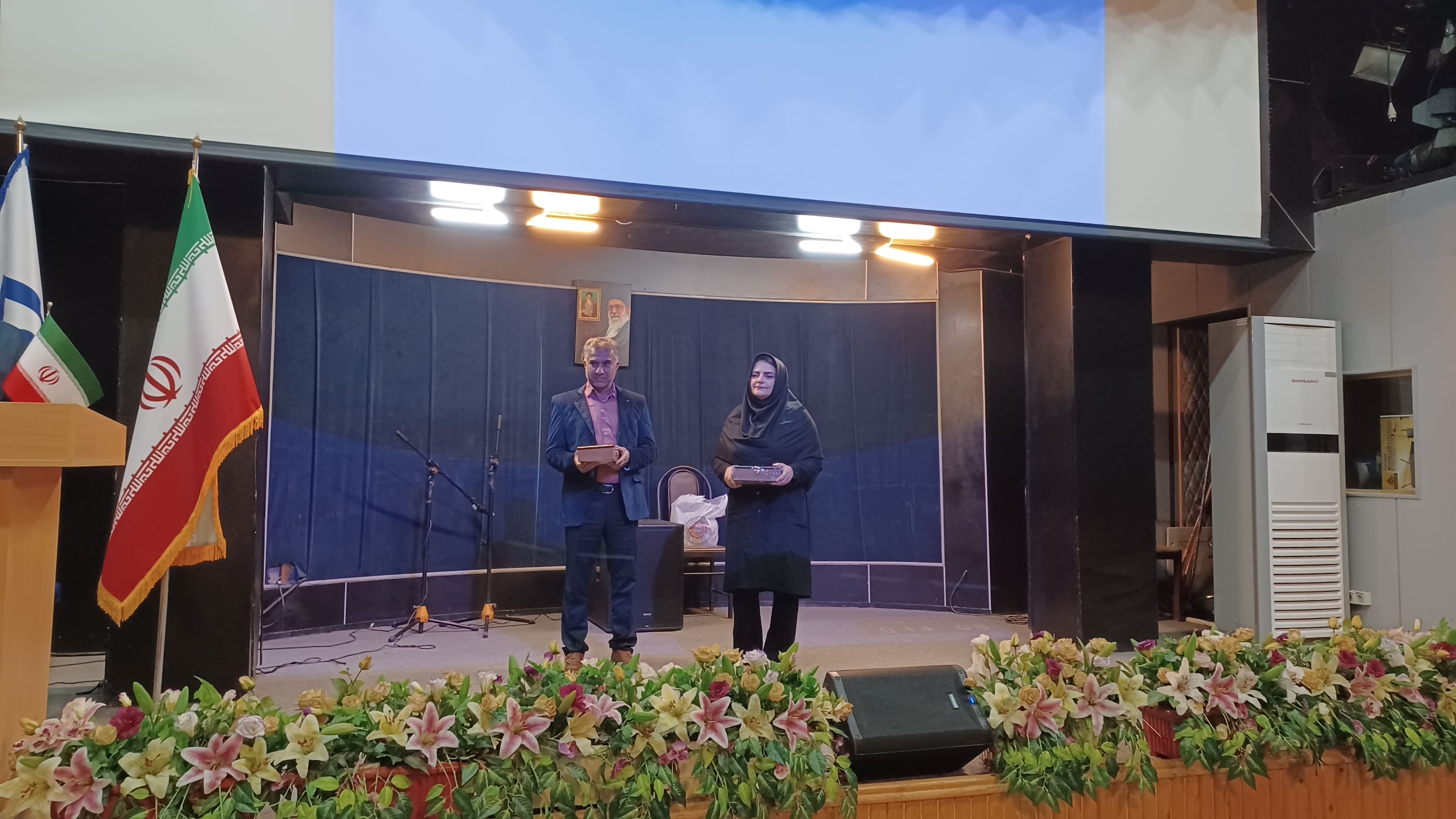 در ادامه این مراسم، از همسر شهید والامقام جهانگیر امینی مینابی، از شهدای انقلاب اسلامی، با اهدای لوح تقدیر تجلیل به عمل آمد.